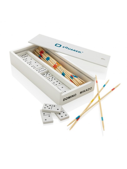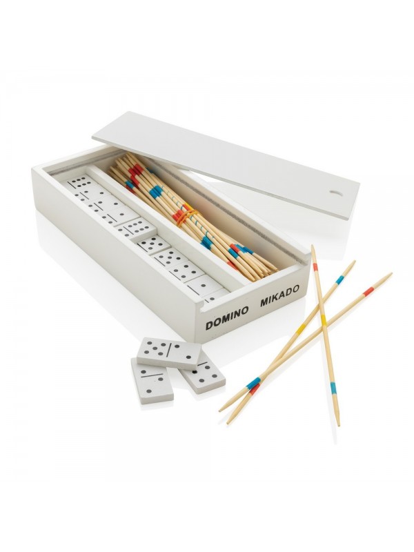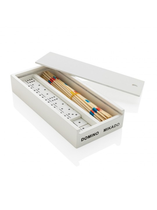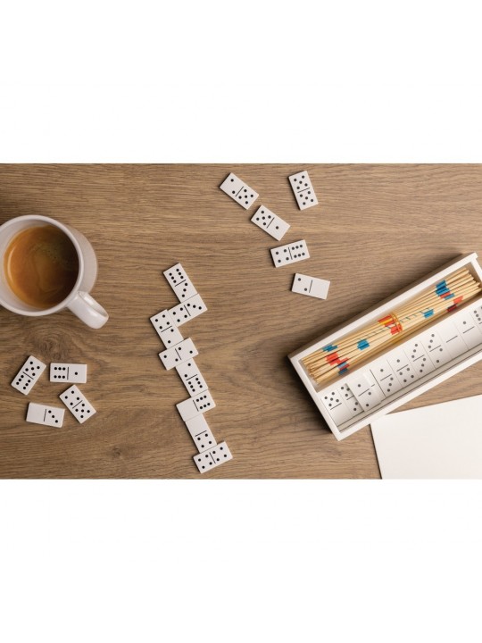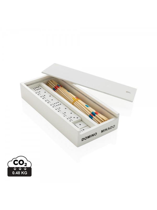 Zestaw gier 2 w 1, mikado (41 el.), domino (28 el.), wykonane z drewna z certyfikatem FSC®, w pudełku z certyfikatem FSC®, ślad węglowy produktu: 0,78 kg CO2