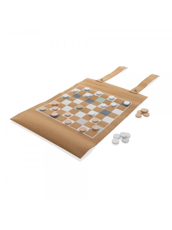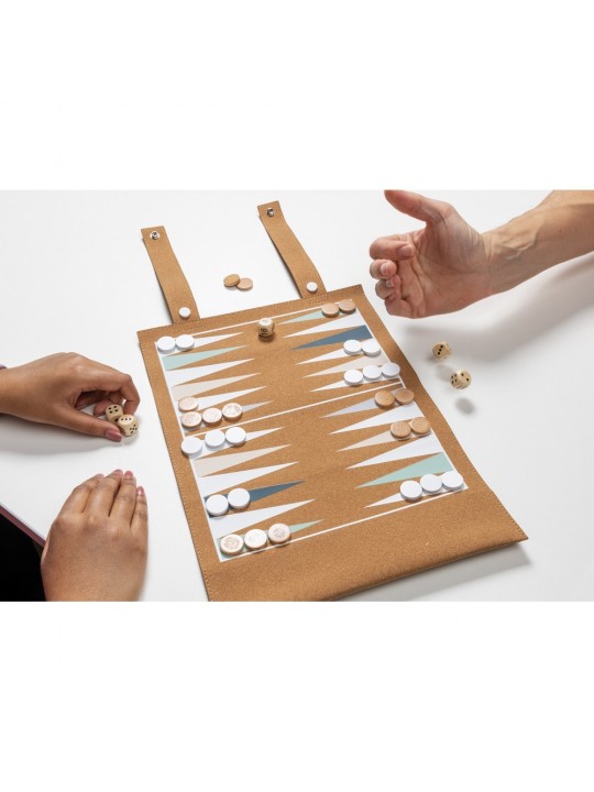 Zestaw gier planszowych 2 el., w komplecie: tryktrak i warcaby, wykonany z korka, składany, ślad węglowy produktu: 0,71 kg CO2