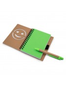 Notatnik "uśmiechnięta buzia" w formacie ok. B7, posiada 60 kartek w linie (120 stron) i spiralne bindowanie, w komplecie znajduje się długopis z kolorowymi elementami i wkładem w niebieskim kolorze, produkt wykonany z papieru i plastiku