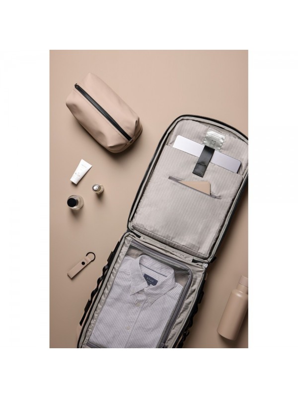 Plecak na laptopa, wykonany z poliestru z recyklingu z certyfikatem RCS, wykończenie z PU, przestronna przegroda główna, dwie kieszenie na zewnątrz, pasek do zamocowania na walizce, miękkie, regulowane paski na ramiona, całkowita zawartość materiałów z recyklingu obliczona w oparciu o wagę całkowitą przedmiotu: 16%