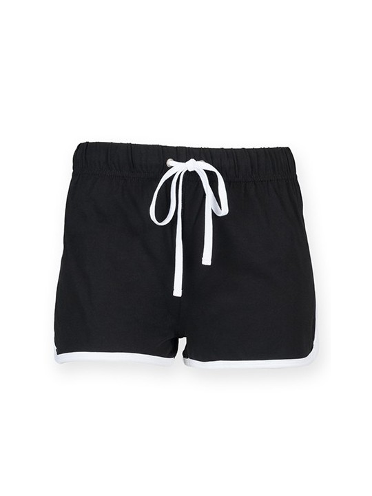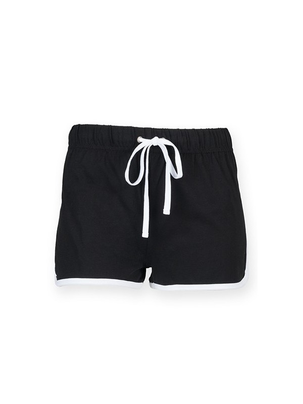 - Szorty w stylu retro z kontrastową lamówką i troczkiem