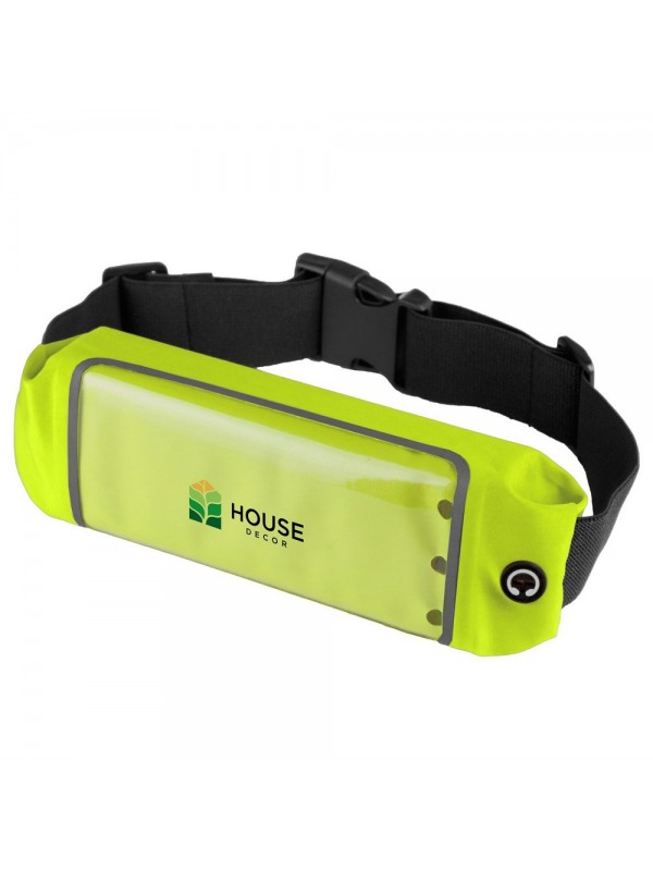 Saszetka zapinana w pasie, posiada kieszeń z okienkiem umożliwiającą obsługę ekranów dotykowych oraz otwór na kabel od słuchawek lub power banku (nie są dołączone), regulowany elastyczny pasek umożliwiający dopasowanie obwodu: min. obwód ok. 59 cm, max. obwód ok. 82 cm (plus rozciągnięcie), produkt wykonany z elastanu