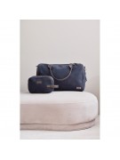 Kosmetyczka, wykonana z imitacji zamszu, detale ze skóry z PU oraz mosiądzu