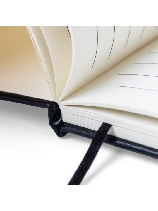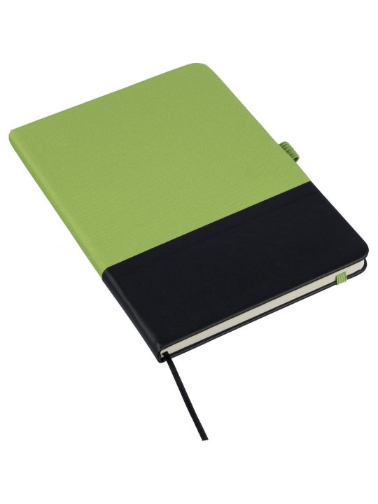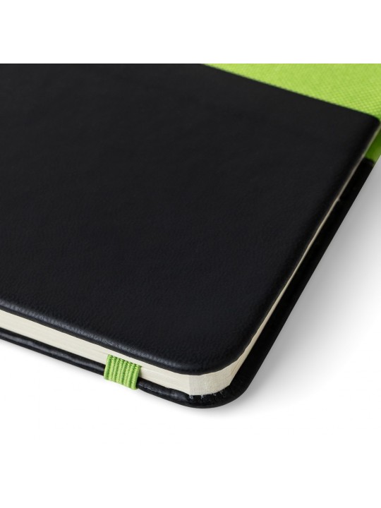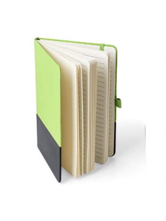 Notatnik ok. A5, posiada 80 kartek w linie, 70 g/m², produkt wykonany z RPET i PU