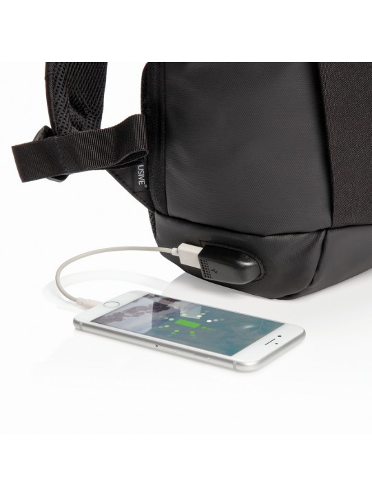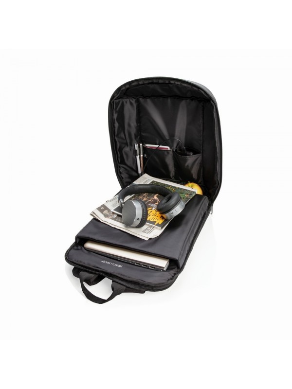 Plecak chroniący przed kieszonkowcami z przegrodą na laptopa 15,6", miękka przegroda główna, kieszenie z ochroną RFID, gniazdo USB do ładowania telefonów (power-bank nie jest dołączony), nie zawiera PVC, wzór zastrzeżony®, ślad węglowy produktu: 4,57 kg CO2