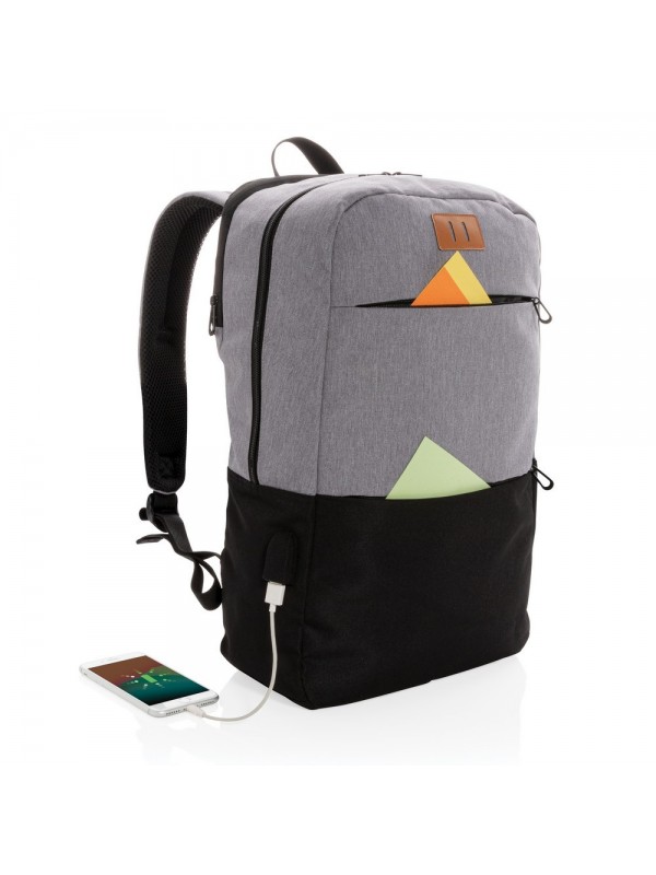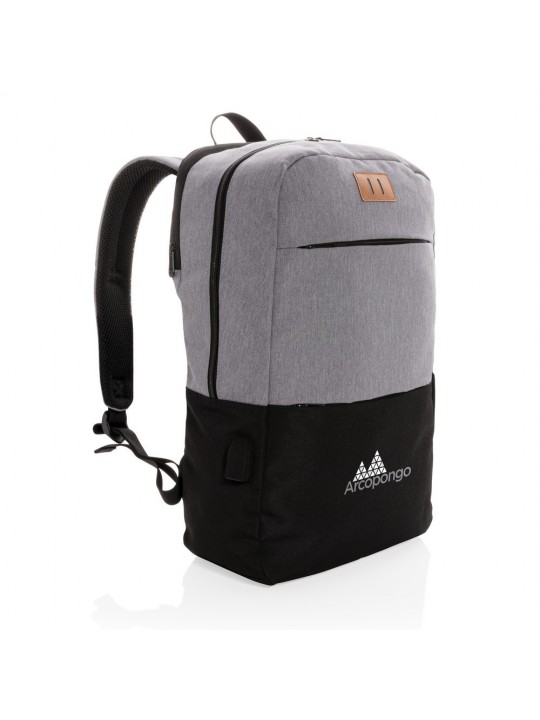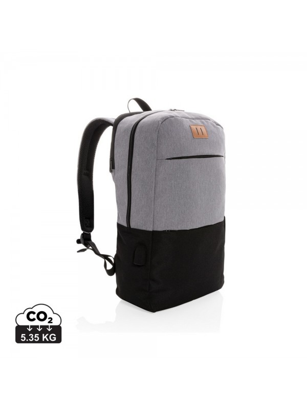 Plecak na laptopa z ochroną RFID, wykonany z wytrzymałej tkaniny, miękka przegroda na laptopa 15,6", kieszeń przednia na akcesoria, kieszeń z ochroną RFID wewnątrz, gniazdo USB do ładowania telefonów (power-bank nie jest dołączony), nie zawiera PVC, ślad węglowy produktu: 5,35 kg CO2