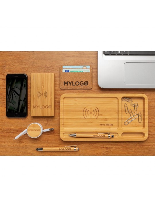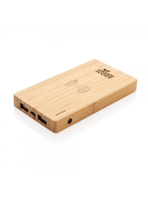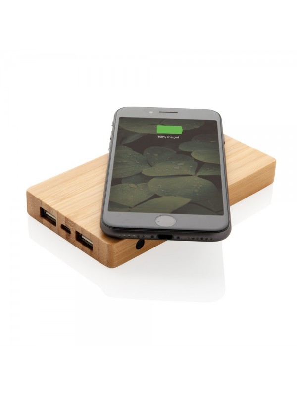 Bambusowy, bezprzewodowy power bank 4000 mAh