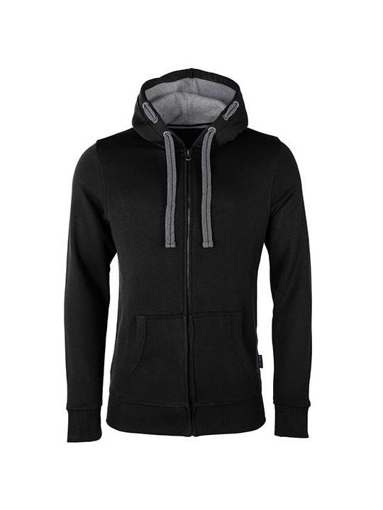 - Kaptur z płaskim, kontrastowym sznurkiem ściągającym i kontrastową podszewką