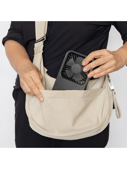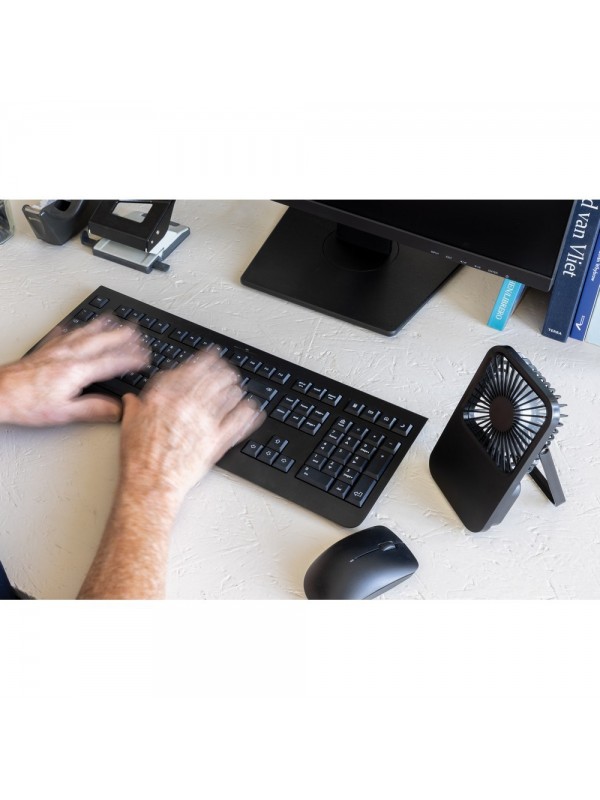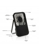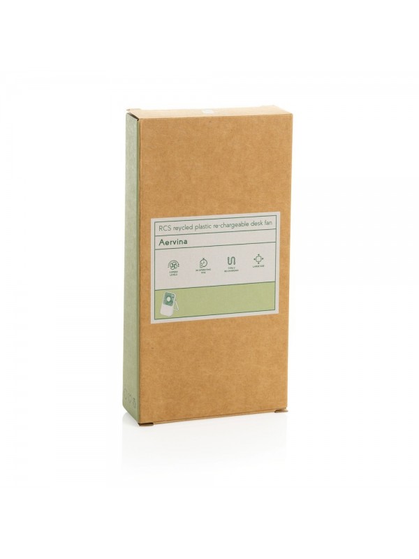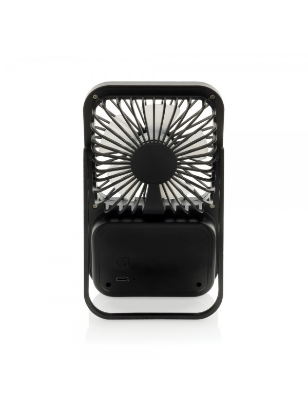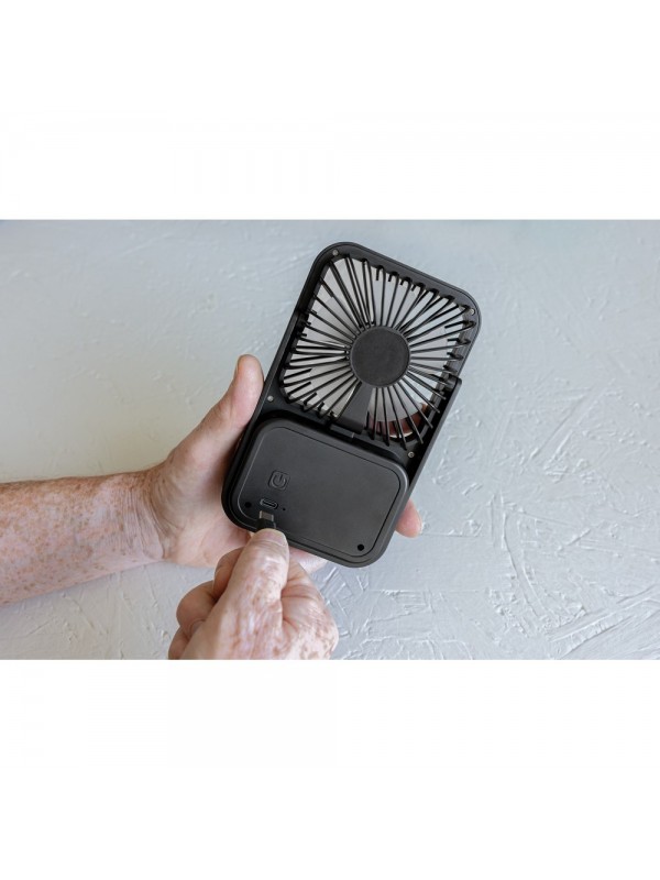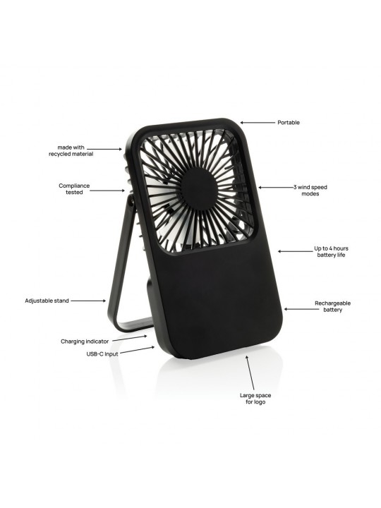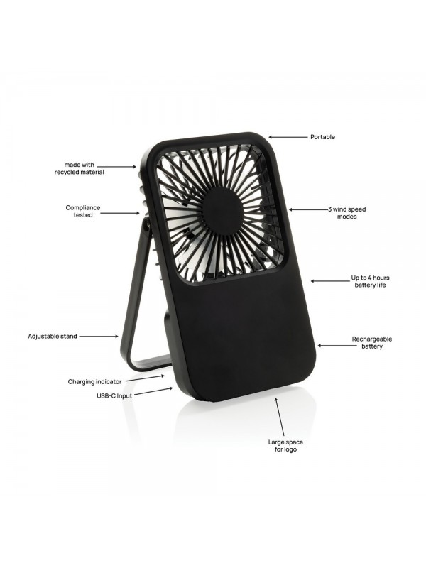 Wentylator kieszonkowy, wentylator biurkowy, wykonany z ABS z recyklingu, do 3 godzin działania na jednym ładowaniu, kabel w komplecie, całkowita zawartość materiałów z recyklingu obliczona na podstawie masy całkowitej produktu: 58%