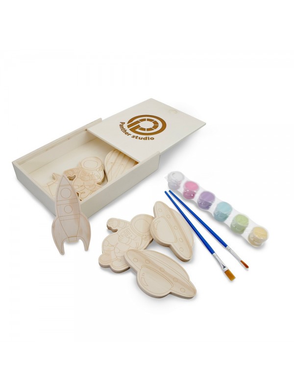Zestaw drewnianych klocków do malowania, farbki i 2 pędzelki | Priya