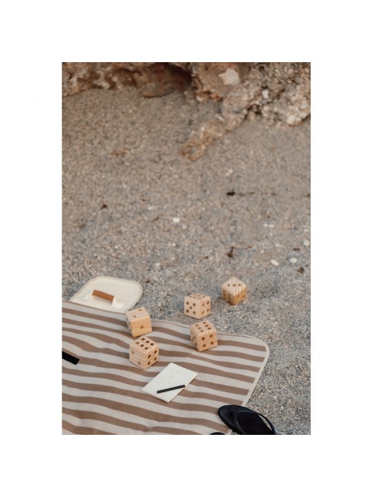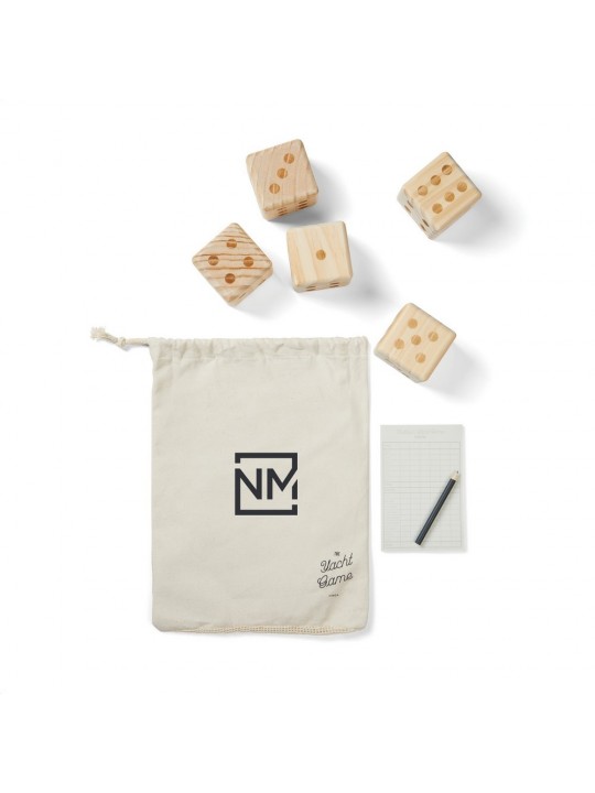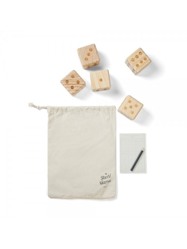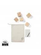 Gra w kości, w komplecie kostki wykonane z drewna sosnowego z certyfikatem FSC®, notatnik i ołówek, pokrowiec i instrukcja w komplecie
