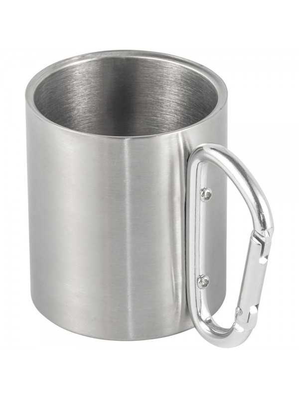 Metalowy kubek 185 ml z karabińczykiem w rączce, podwójne ścianki
