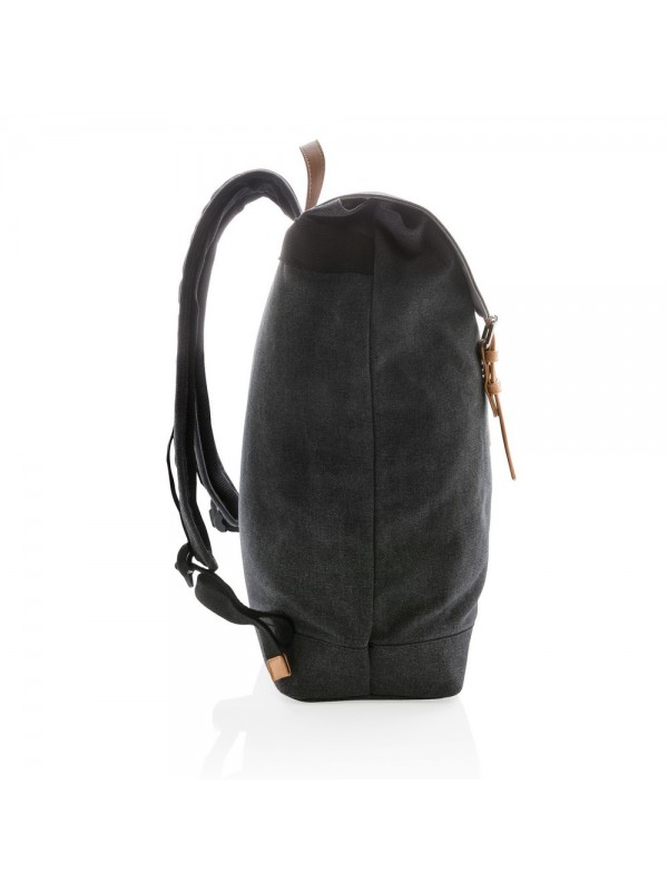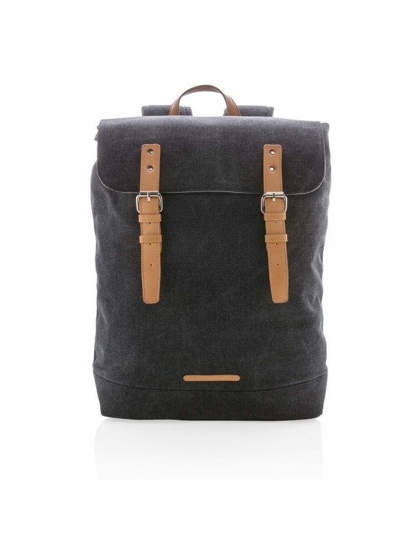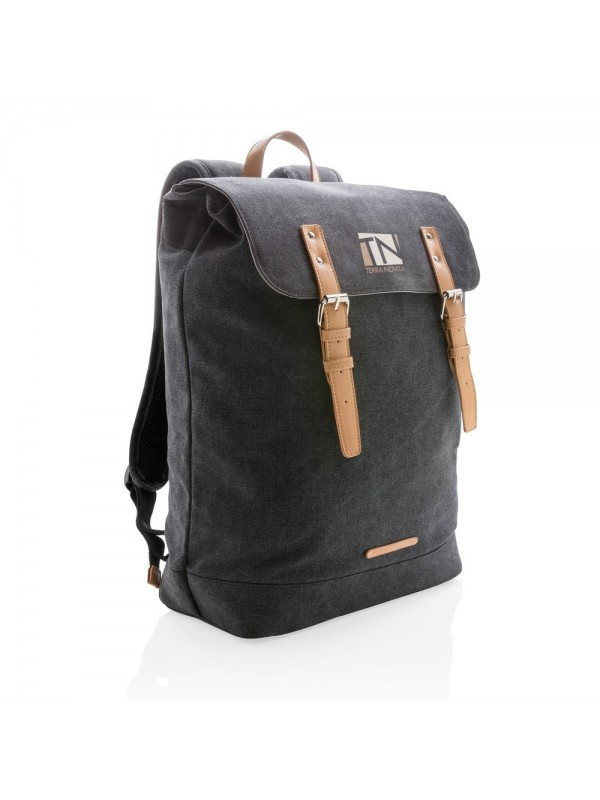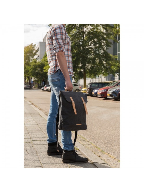Plecak z miękką przegrodą na laptopa 15,6", wykonany z wytrzymałego płótna, pokrywa górna zamykana na paski z magnetycznymi klamrami, nie zawiera PVC, ślad węglowy produktu: 8,47 kg CO2