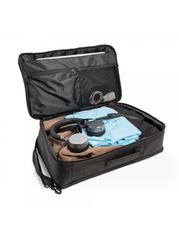 Wielofunkcyjny plecak na laptopa 15,6" z ochroną RFID, duża przegroda główna, przednia kieszeń na zamek błyskawiczny, specjalna konstrukcja plecaka pozwala na noszenie plecaka na 4 sposoby: poprzez przypięcie paska na ramię oraz odpięcie i schowanie szelek plecak można przekształcić w torbę na ramię, dopasowując pasek na ramię plecak można przekształcić w torbę crossbody, schowanie pasków na ramię umożliwia noszenie torby w ręku, pasek do zamocowania na walizce, miękkie paski na ramiona, nie zawiera PVC, ślad węglowy produktu: 8,64 kg CO2