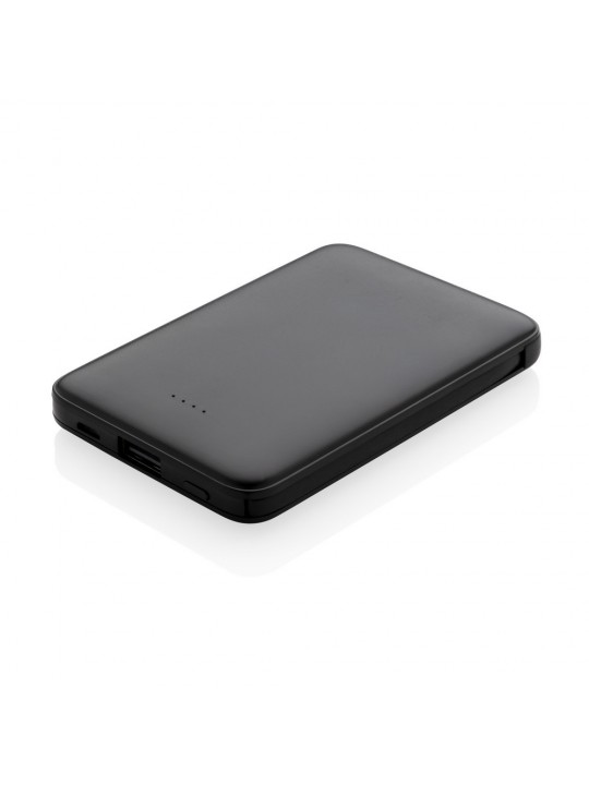 Power bank 5000 mAh, zintegrowany kabel 3 w 1 z TPE, kompatybilny z większością urządzeń dostępnych na rynku, kieszonkowy rozmiar, wykonany z ABS, wskaźniki poziomu naładowania, wbudowany akumulator litowo-polimerowy klasy A o dużej gęstości i trwałości pozwala naładować telefon do 2 razy, wejście 5V/2A, wyjście 5V/2A, ślad węglowy produktu: 1,99 kg CO2