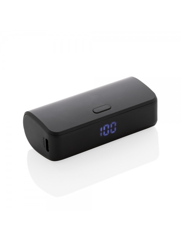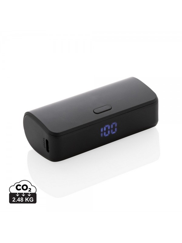Power bank 5000 mAh, szybkie ładowanie przewodowe 20W, wykonany z ABS z recyklingu z certyfikatem RCS, wyjście USB typu C, ślad węglowy produktu: 0 kg CO2
