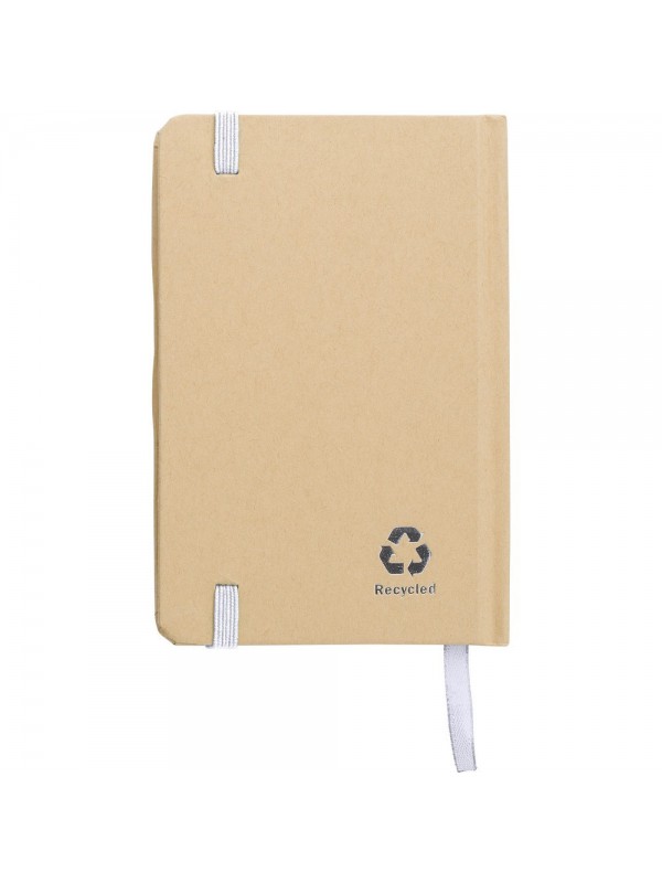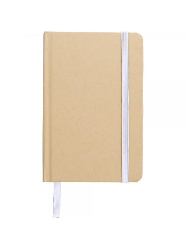Notatnik A6 (160 kartek w linie), twarda okładka, wykonany z papieru kraftowego z recyklingu, tasiemka zakładkowa i elastyczna opaska do zamykania
