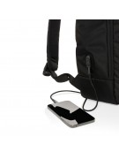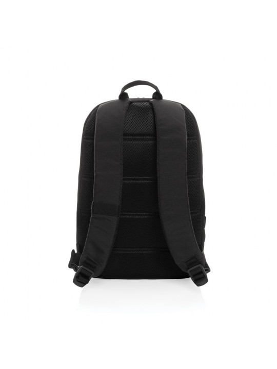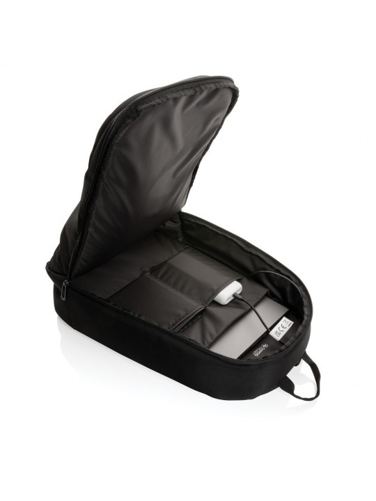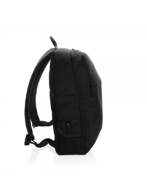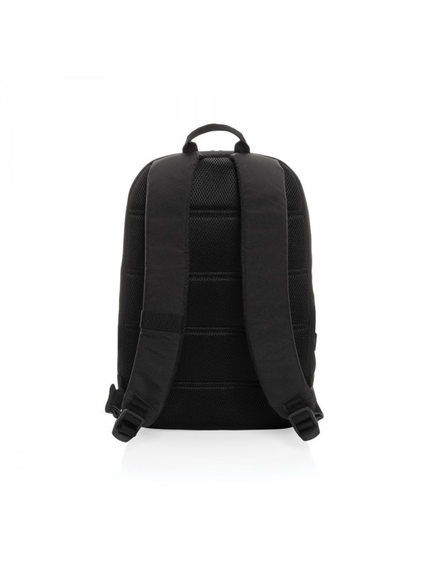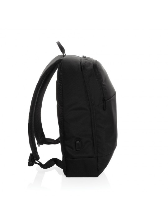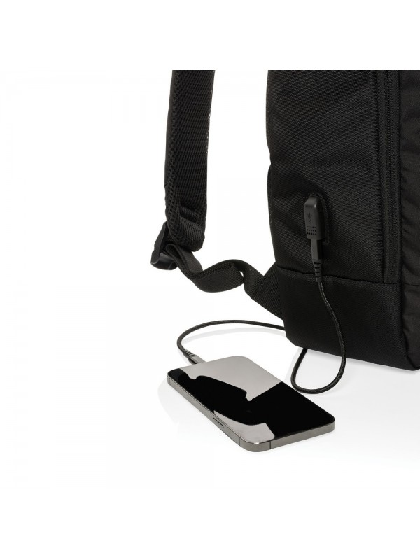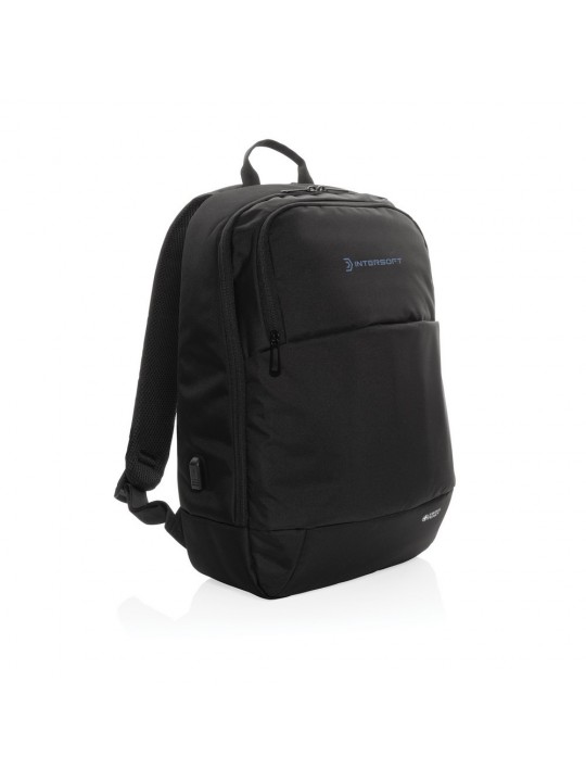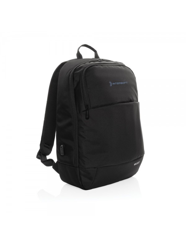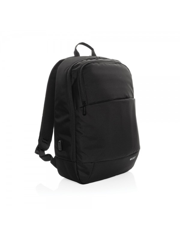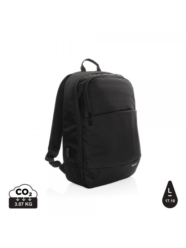 Plecak na laptopa 15,6", wykonany z RPET, przestronna przegroda główna, kieszeń z przodu, zintegrowany port USB do ładowania (power-bank nie jest dołączony), posiada wbudowany znacznik AWARE™, który potwierdza wykorzystanie materiałów z recyklingu, 2% wpływów z każdego sprzedanego produktu z kolekcji Impact jest przekazywane na rzecz Water.org, nie zawiera PVC