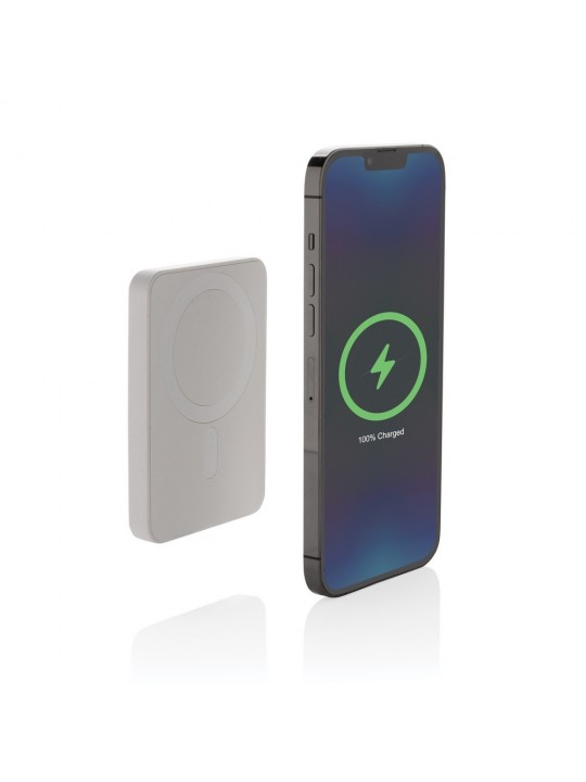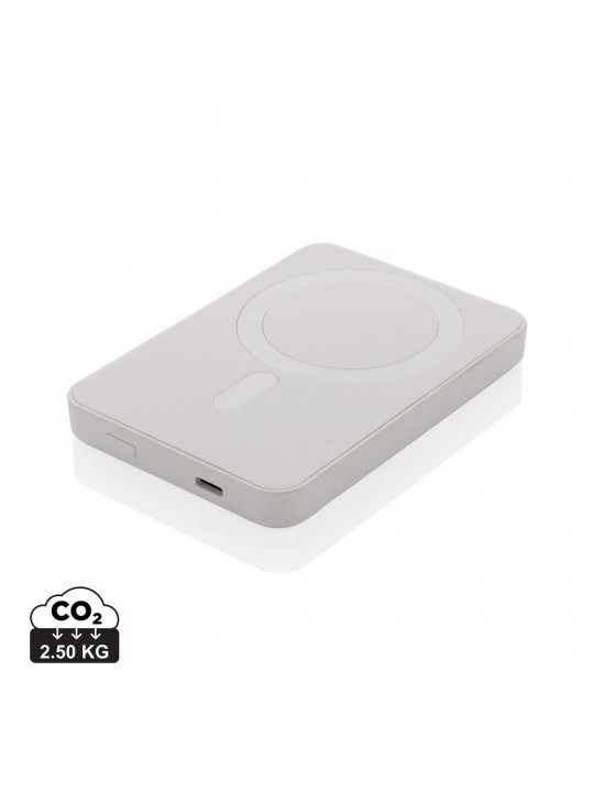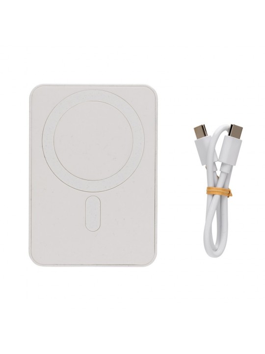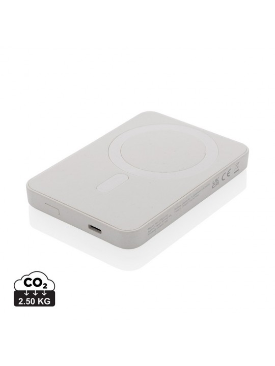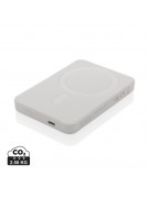 Power bank 5000 mAh, magnetyczna ładowarka bezprzewodowa 5W, wskaźniki poziomu naładowania, wykonany z ABS z recyklingu, całkowita zawartość materiałów z recyklingu obliczona na podstawie wagi całkowitej przedmiotu: 20%, wejście USB typu C 5V/2.4A, wyjście USB typu C 5V/2.4A, kabel w komplecie, w pudełku z certyfikatem FSC® mix, ślad węglowy produktu: 2,5 kg CO2