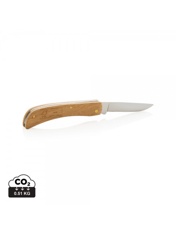 Nóż składany, scyzoryk, wykonany ze stali nierdzewnej i drewna z certyfikatem FSC®, w ozdobnym pudełku z papieru kraftowego z certyfikatem RCS®, ślad węglowy produktu: 0,55 kg CO2