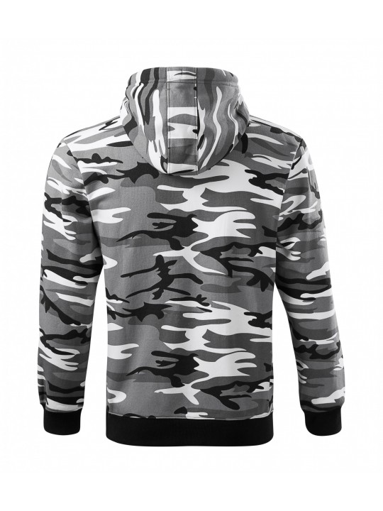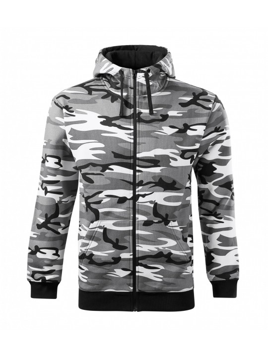 prosty krój ze szwami bocznymi, odwrócony spiralny zamek błyskawiczny na całej długości , kaptur z podszewką ściągany za pomocą sznurka, wewnetrzna tylna cżęść lamówki wzmocniana taśmą, kieszenie naszyte typu kangurka, dolny ściągacz i mankiety rękawów z dzianiny ściągaczowej 2:2 z dodatkiem 5 % elastanu, elementy kontrastowe, czesana strona wewnętrzna