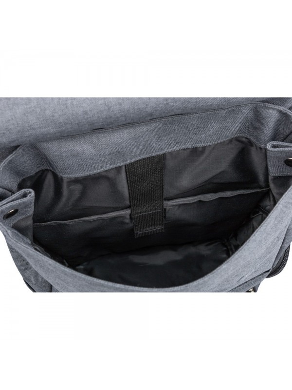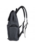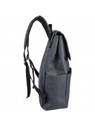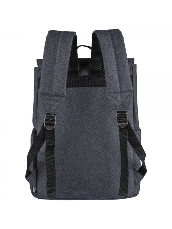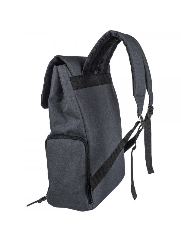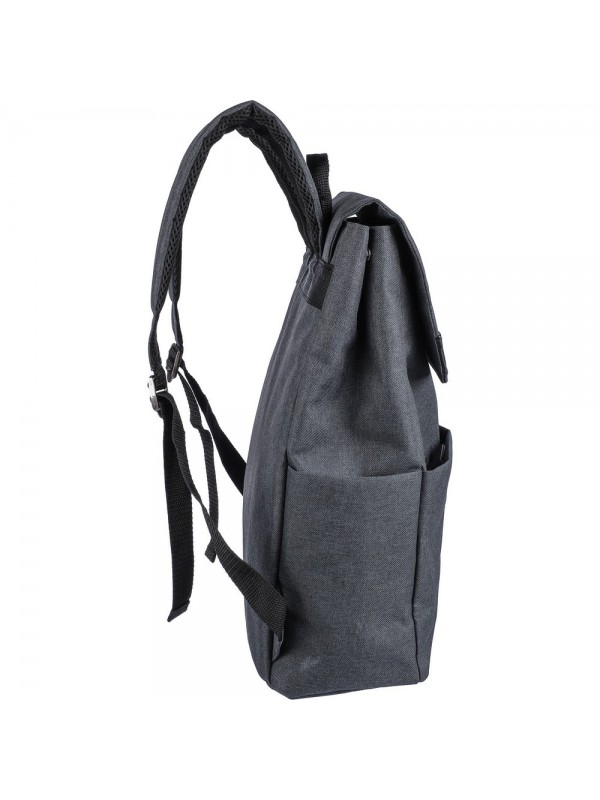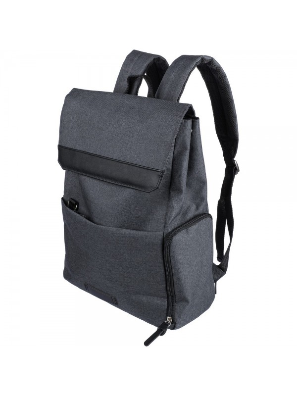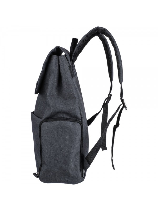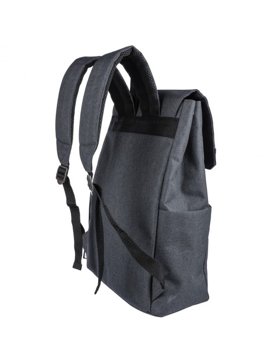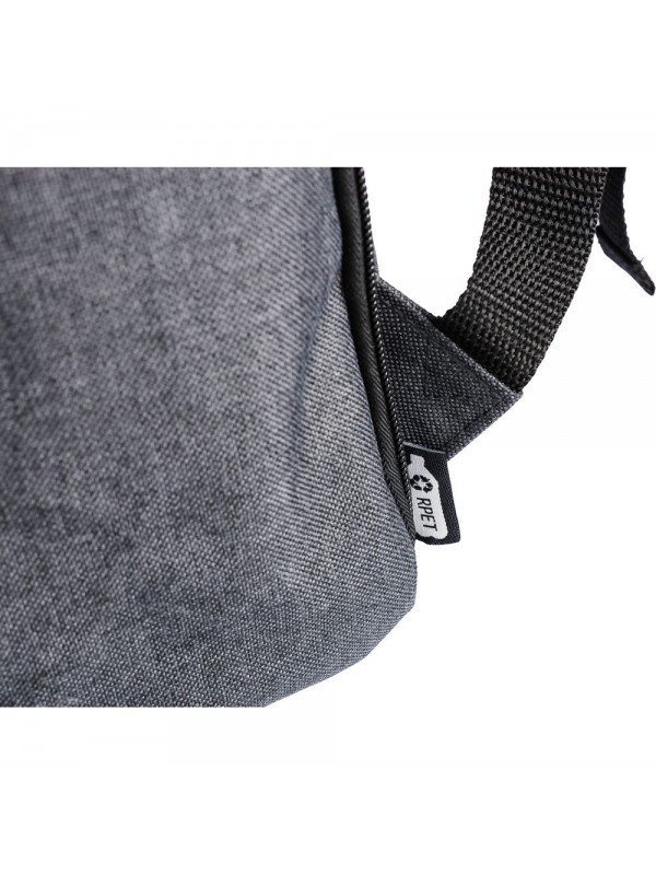 Plecak na laptopa 15" z podszewką, mała przednia kieszeń zapinana na zamek, komora zapinana na zamek z boku, zwykła kieszeń boczna, duża komora zamykana na magnes z kieszenią na laptopa, przyciski z boku umożliwiają zamknięcie plecaka, gdy nie jest on całkowicie wypełniony, regulowane paski, uchwyt na górze umożliwiający zawieszenie na wieszaku, ikona RPET na metce, wewnątrz zapinanej na zamek kieszeni z przodu znajduje się kółko i karabińczyk umożlwiający zapięcie kluczy i chroni je przed kradzieżą, produkt wykonany z płótna poliestrowego, poliester i PP