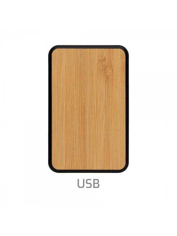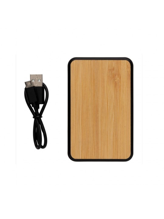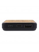 Power bank 5000 mAh, wykonany z ABS z recyklingu z certyfikatem RCS i bambusa z certyfikatem FSC®, całkowita zawartość materiałów z recyklingu: 20%, obliczona na podstawie masy całkowitej przedmiotu, wbudowany akumulator litowo polimerowy o wysokiej gęstości, wejście USB typu C 5V/2A, wejście micro USB 5V/2A, wyjście 5V/2A, w komplecie kabel z TPE z recyklingu z certyfikatem RCS®, ślad węglowy produktu: 1,94 kg CO2