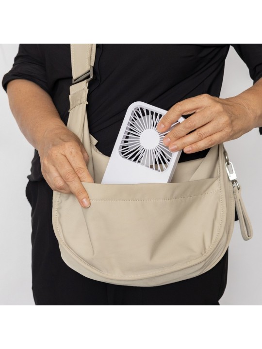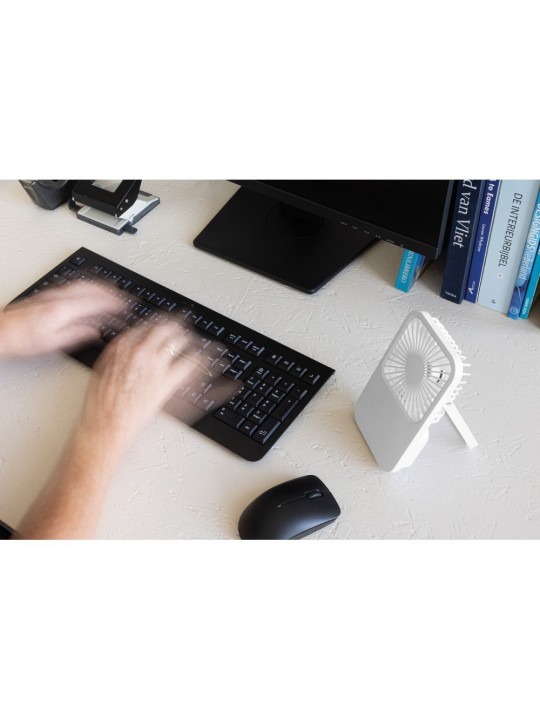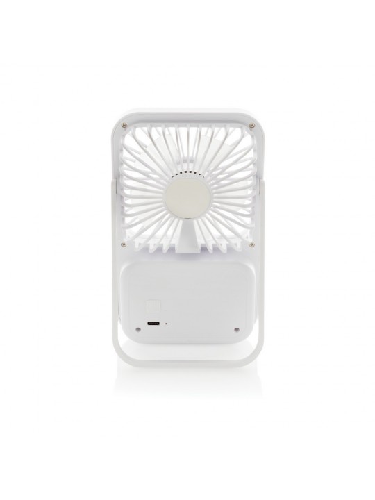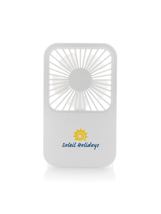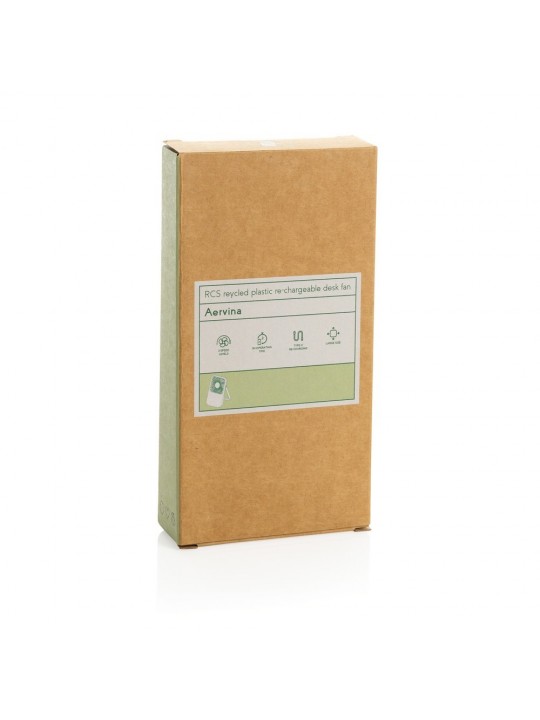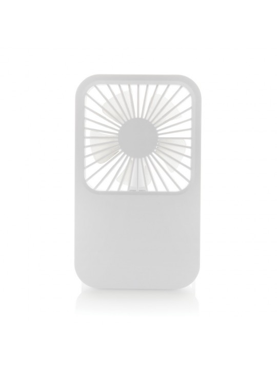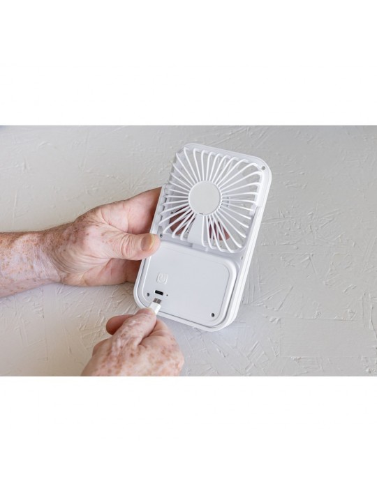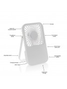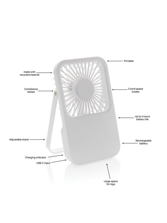 Wentylator kieszonkowy, wentylator biurkowy, wykonany z ABS z recyklingu, do 3 godzin działania na jednym ładowaniu, kabel w komplecie, całkowita zawartość materiałów z recyklingu obliczona na podstawie masy całkowitej produktu: 58%