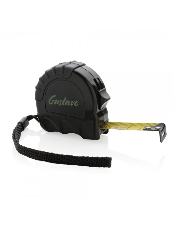 Miara 3 m, taśma o szerokości 16 mm z haczykiem i magnesami, przycisk blokady, wykonana z ABS pochodzącego z recyklingu z certyfikatem RCS (Recycled Claim Standard) który gwarantuje, że wykorzystane materiały pochodzą z recyklingu, całkowita zawartość materiału z recyklingu obliczona w oparciu o wagę całkowitą przedmiotu: 21%, uchwyt z TPR, w pudełku z papieru kraftowego z certyfikatem FSC® mix (Forest Stewardship Council), ślad węglowy produktu: 0,46 kg CO2