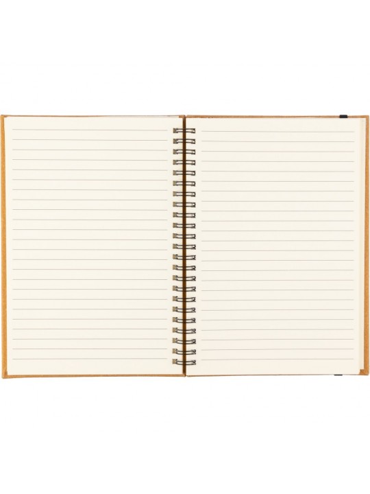 Notatnik ok. A5, posiada 80 stron w linie, miękka okładka, tasiemka zakładkowa umożliwia wygodne zaznaczanie ostatniej strony lub ważniejszych notatek, zmieści się do szkolnego plecaka, produkt wykonany ze skóry z recyklingu