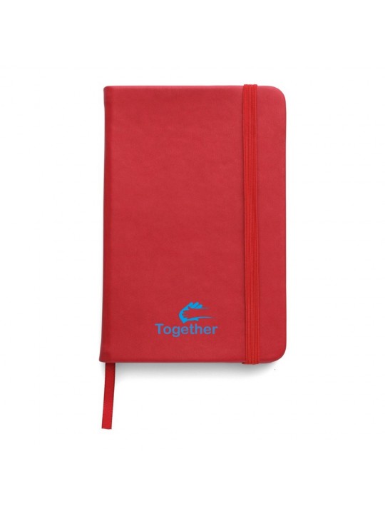 Notatnik w formacie ok. A5, posiada 96 kartek w linie (192 strony), tasiemka zakładkowa umożliwia wygodne zaznaczanie ostatniej strony lub ważniejszych notatek, dodatkowe zamknięcie w postaci dopasowanej kolorystycznie elastycznej opaski, twarda okładka wykonana z PU