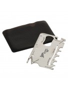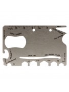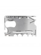 Narzędzie wielofunkcyjne w etui, posiada 9 funkcji: linijka (5 cm / 2 cale), mini wkrętak, otwieracz do kartonu, 2x wkrętak, klucze płaskie (#2, #4, #6, #8, #10, #12), podstawka pod telefon (karta nie jest dołączona), otwieracz do puszek, otwieracz do butelek, produkt wykonany ze stali nierdzewnej
