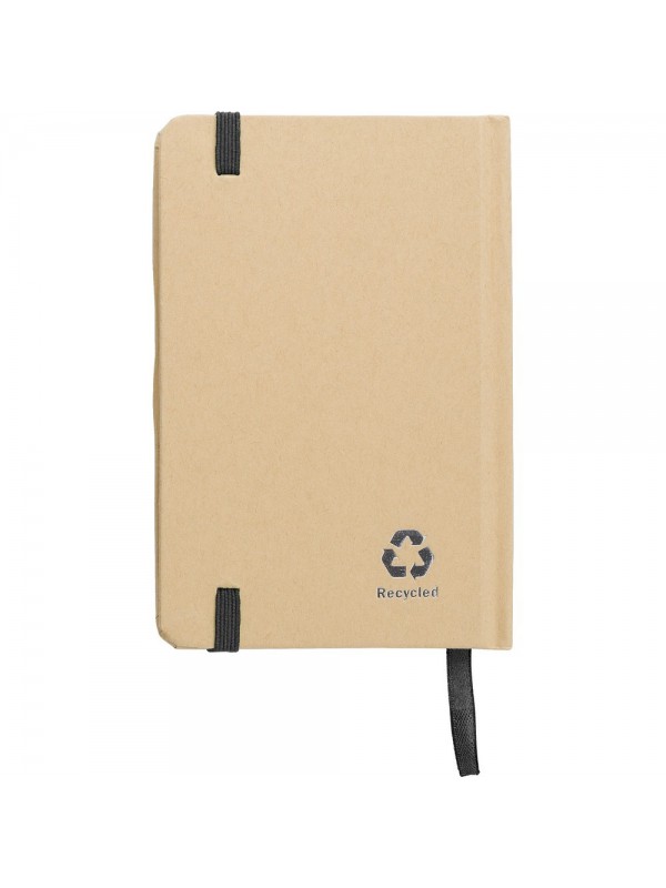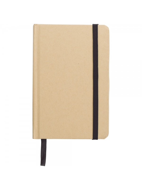 Notatnik A6 (160 kartek w linie), twarda okładka, wykonany z papieru kraftowego z recyklingu, tasiemka zakładkowa i elastyczna opaska do zamykania