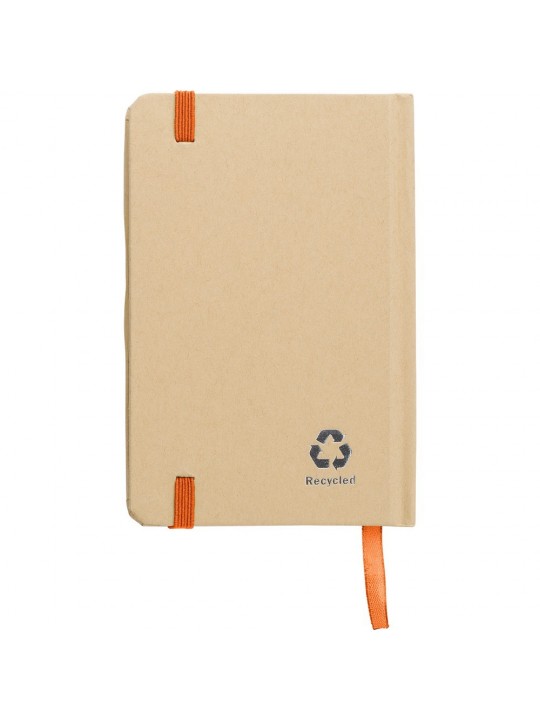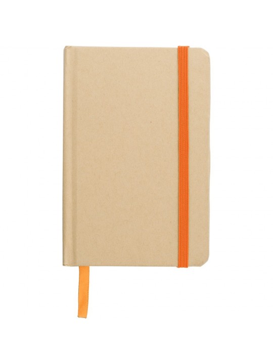 Notatnik A6 (160 kartek w linie), twarda okładka, wykonany z papieru kraftowego z recyklingu, tasiemka zakładkowa i elastyczna opaska do zamykania