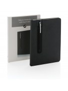 Notatnik A5 (80 kartek 80 g/m2 w linie), w komplecie metalowy długopis, touch pen, miejsce na przybory do pisania, okładka wykonana z PU, w ozdobnym pudełku, ślad węglowy produktu: 0,85 kg CO2