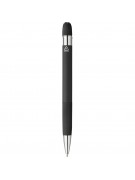 Notatnik ok A5, 100 stron w linie (70 g/m²) z twardą okładką przypominającą sztruks, tasiemka zakładkowa umożliwia wygodne zaznaczanie ostatniej strony lub ważniejszych notatek, długopis w komplecie, gumowe wykończenie, paskowane detale na trzonie i w górnej części, chromowana plastikowa końcówka, ikona recyklingu na obu produktach, zapakowane w brązowe kartonowe pudełko, produkt wykonany z PU i metalu