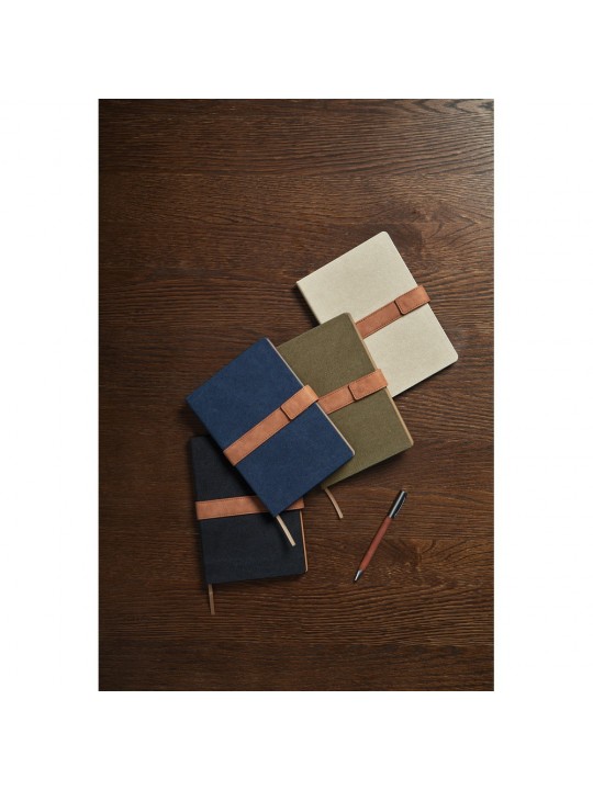 Notatnik (80 białych kartek 80 g/m2 w linie), opaska z PU, zamknięcie na magnes, wykonany z materiałów pochodzących z recyklingu z certyfikatem RCS, całkowita zawartość materiałów z recyklingu obliczona w oparciu o wagę całkowitą przedmiotu: 65%