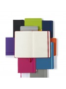 Notatnik w kieszonkowym formacie ok. A6, posiada 96 kartek w linie (192 strony), tasiemka zakładkowa umożliwia wygodne zaznaczanie ostatniej strony lub ważniejszych notatek, dodatkowe zamknięcie w postaci dopasowanej kolorystycznie elastycznej opaski, twarda okładka wykonana z PU