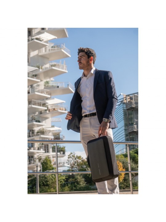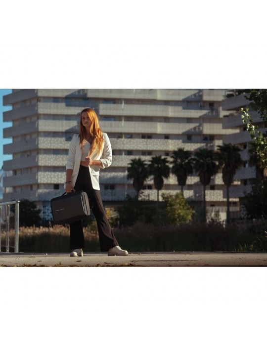 Plecak na laptopa 16”, torba, ukryte kieszenie wewnątrz, przegroda na tablet do 12,9”, wykonany z materiału odpornego na przecięcie, metalowa rama wewnątrz, kieszeń z ochroną RFID, przestronna przegroda główna, zintegrowana kłódka, posiada znacznik AWARE™, który gwarantuje, że wykorzystane materiały pochodzą z recyklingu