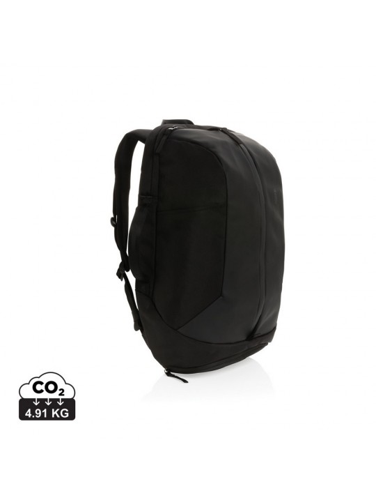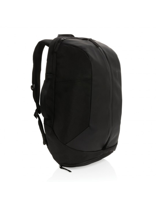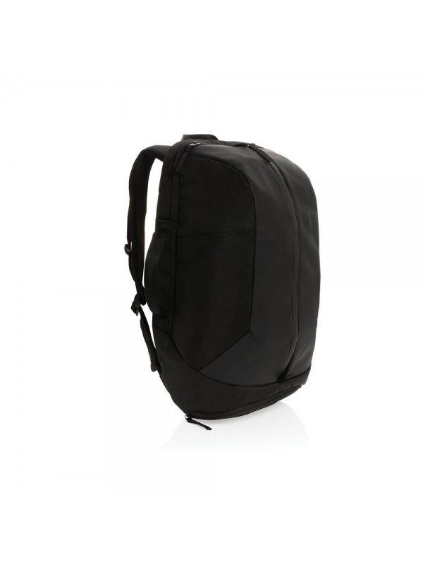 Plecak na laptopa 15,6", specjalna hybrydowa konstrukcja sprawia, że plecak jest idealny do biura i na siłownię, posiada oddzielne przegrody na sprzęt sportowy i biurowy, wykonany z materiałów pochodzących z recyklingu do produkcji których zostało ponownie wykorzystanych 31,1 butelek PET o pojemności 0,5 l, dzięki zastosowaniu technologii śledzącej AWARE™ wykorzystane włókna są identyfikowalne z pochodzenia, 2% wpływów z każdego sprzedanego produktu jest przekazywane na rzecz Water.org, nie zawiera PVC