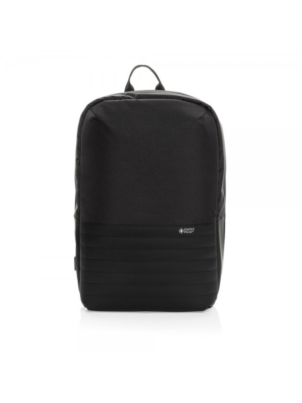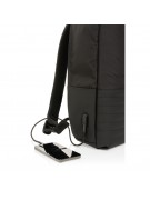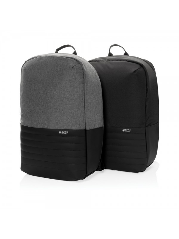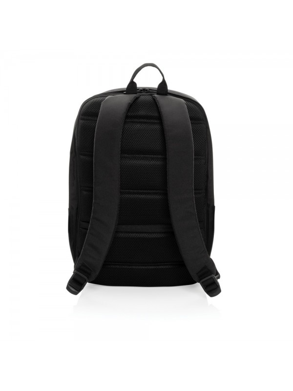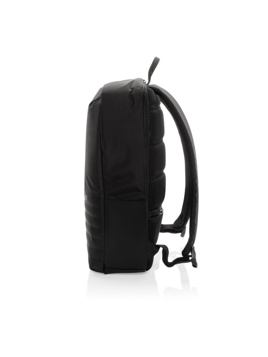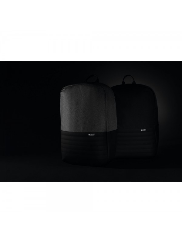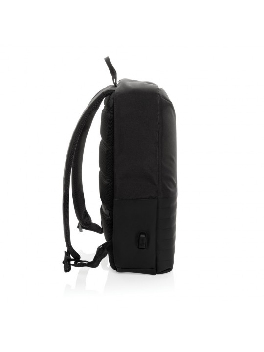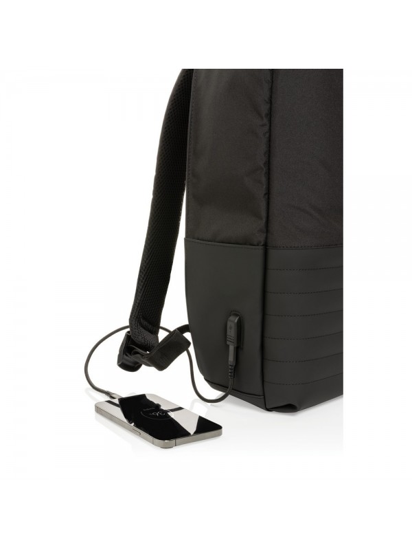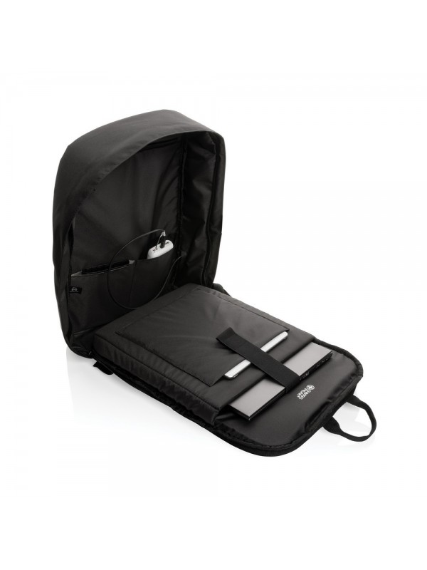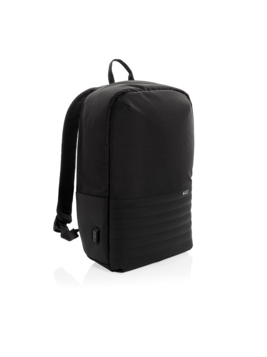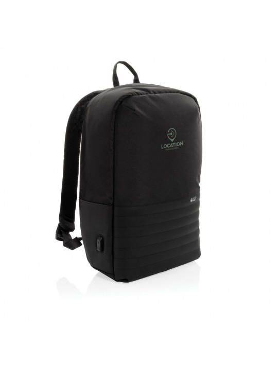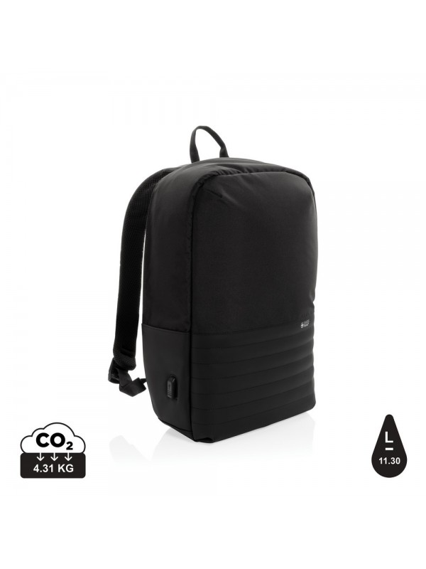 Plecak na laptopa 15,6", chroniący przed kieszonkowcami, przestronna przegroda główna, wewnątrz kieszeń z ochroną RFID, port ładowania USB, wykonany z poliestrów pochodzących z recyklingu do produkcji których zostało ponownie wykorzystanych 20,8 butelek PET, dzięki zastosowaniu technologii śledzącej AWARE™ wykorzystane włókna są identyfikowalne z pochodzenia, 2% wpływów z każdego sprzedanego produktu jest przekazywane na rzecz Water.org