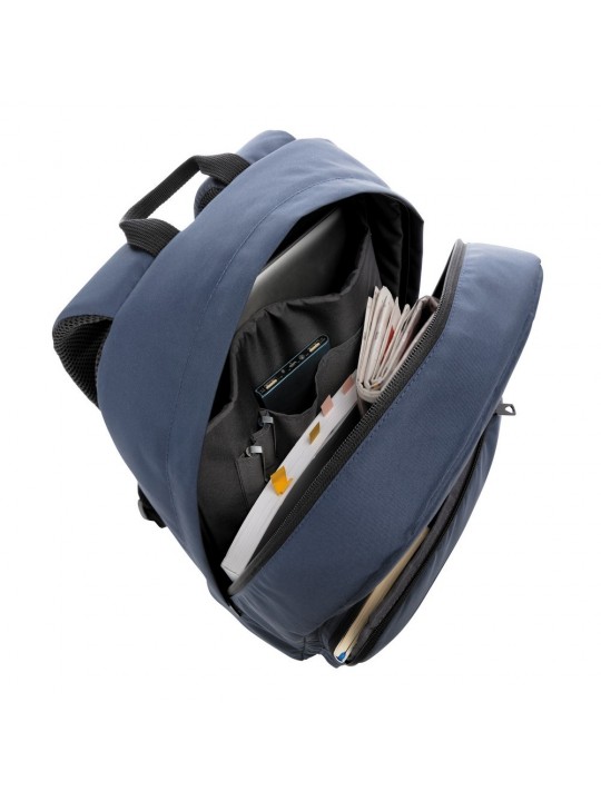 Plecak na laptopa 15,6", przestronna przegroda główna z miejscem na laptopa, wewnątrz kieszeń na drobne akcesoria i pętle na przybory do pisania, kieszeń na zamek z przodu, tkanina zewnętrzna i poszewka wewnętrzna wykonane z pochodzącego z poliestru AWARE™ RPET, który został wykonany z butelek PET pochodzących z recyklingu z identyfikowalnym źródłem, produkt został wykonany z 33 butelek plastikowych poddanych recyklingowi, 2% zysku ze sprzedaży każdego produktu jest przekazywane na rzecz fundacji Water.org