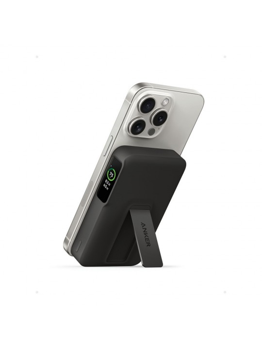 Power bank 10000 mAh, magnetyczna ładowarka bezprzewodowa 15W, składany stojak na telefon, wbudowany wyświetlacz, wyjście/wejście USB-C, działa z telefonami posiadającymi możliwość ładowania indukcyjnego