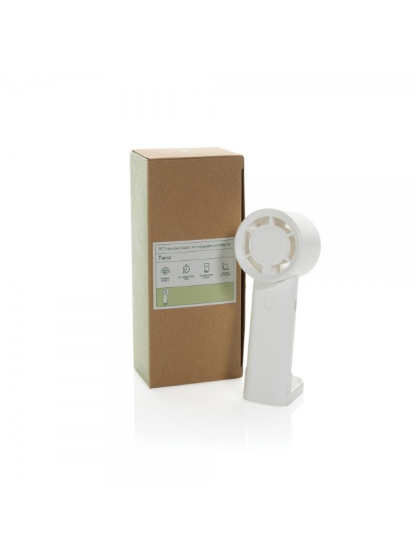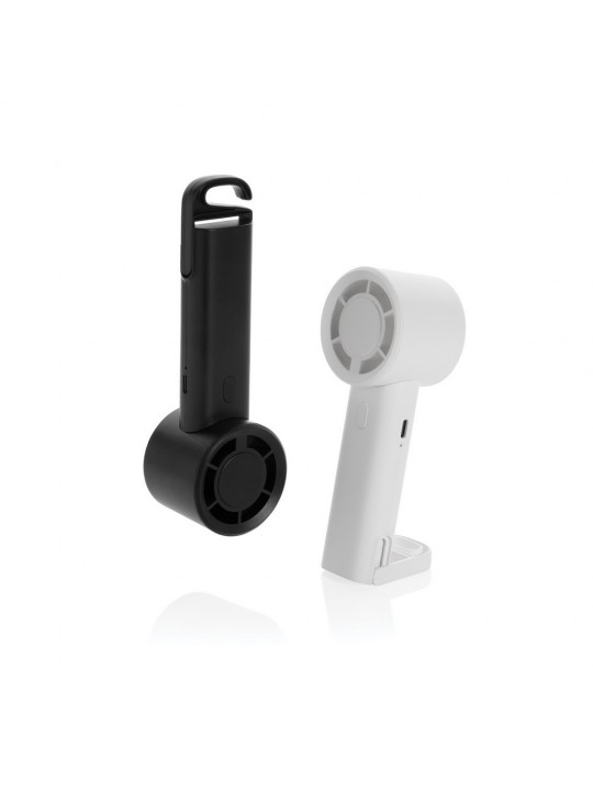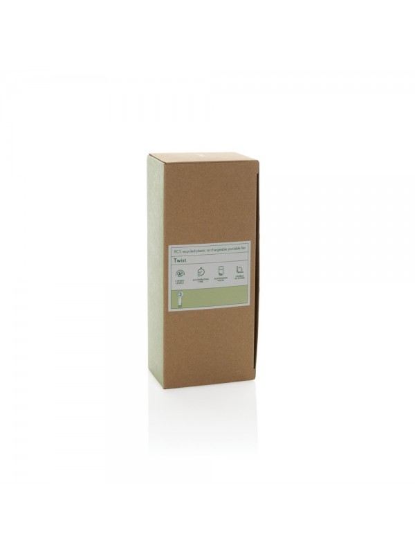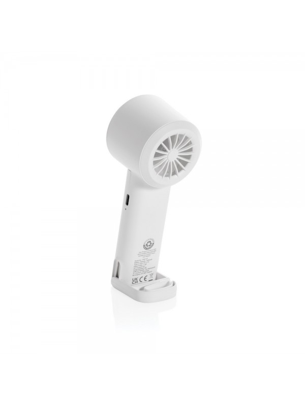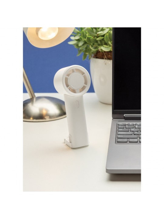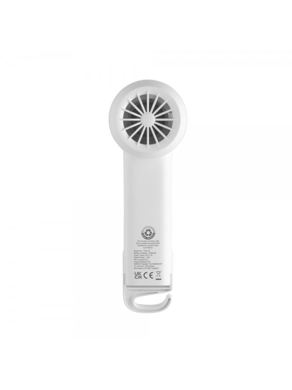 Wentylator kieszonkowy, wykonany z ABS z recyklingu, do 6 godzin działania na jednym ładowaniu, kabel w komplecie, całkowita zawartość materiałów z recyklingu obliczona na podstawie masy całkowitej produktu: 35%