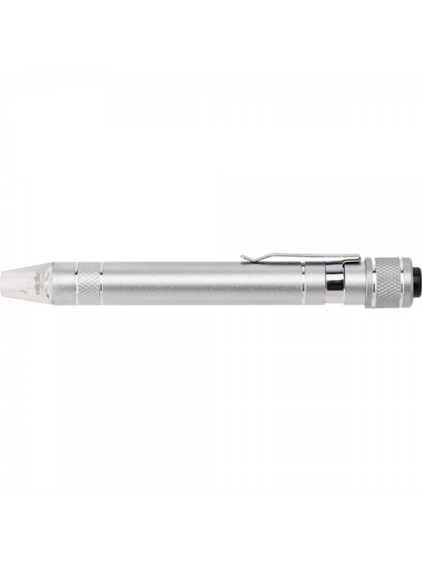 Śrubokręt w kształcie długopisu z lampką LED i końcówkami: 3 płaskie i 3 krzyżakowe